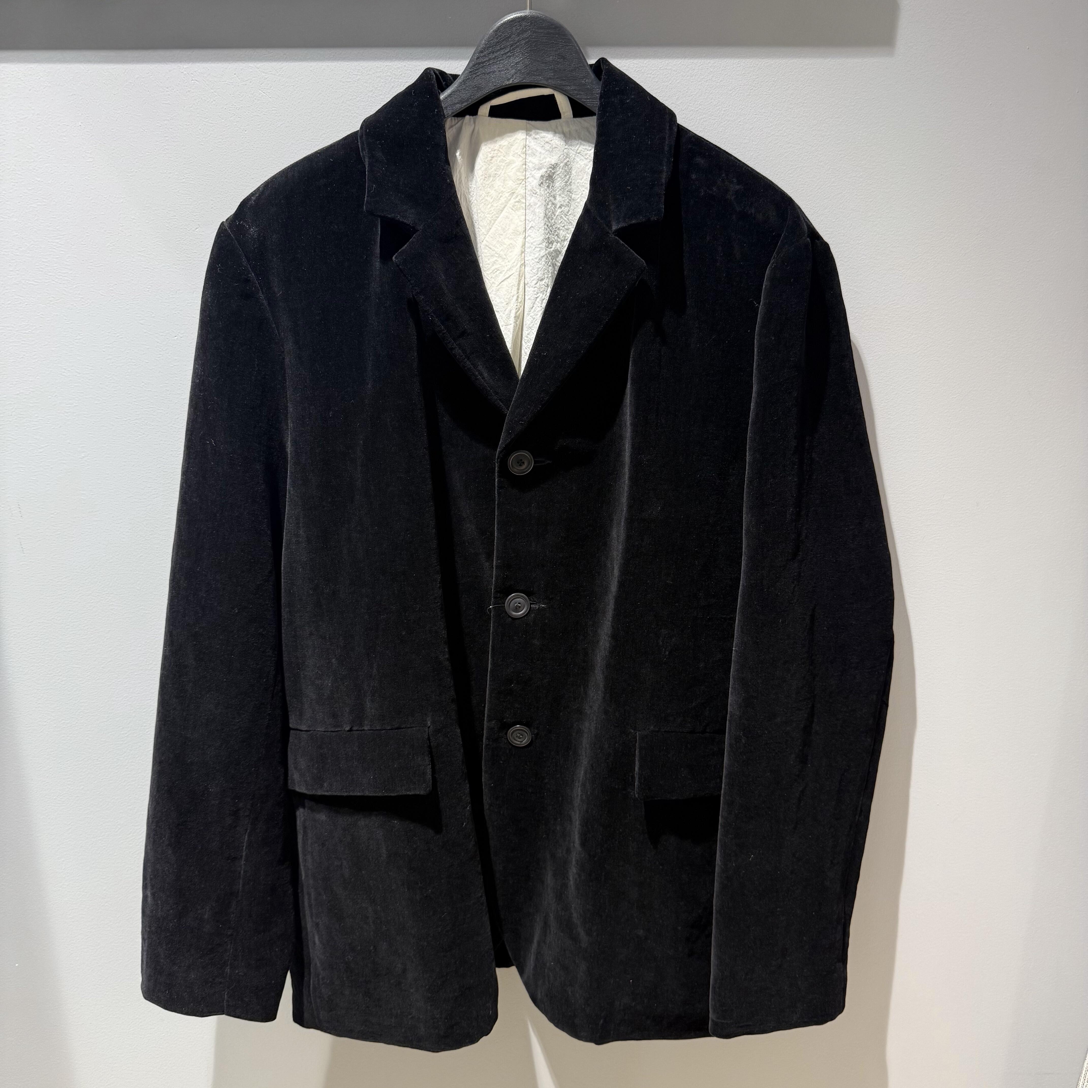ジャケットというフォーマル性のあるアイテムだからこそ、素材そのものに格を補填する厚みや重厚感を持たせたいという意図や、平面的な構造を素材の陰影により、立体感・深さの表現をするような演出、ベルベットにも洗いや染め、摩擦加工などが加わることで、使い込むごとに毛羽が寝たり起きたりし、微細なテクスチャが変化していくことで、時間の層を感じさせる風合いなど Casey Caseyを存分に楽しめるアイテムとなっております。