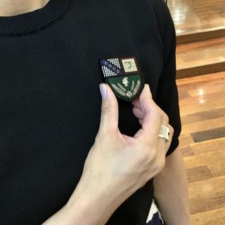 トラッドな雰囲気のエンブレムブローチ。
