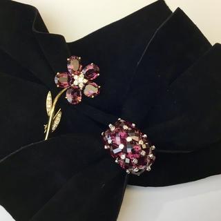 ガーネット をフラワーモチーフにセッティングしたブローチです。