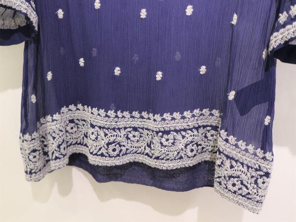 こちらのブラウスも、刺繍が華やかで女性らしさ溢れる1点です。