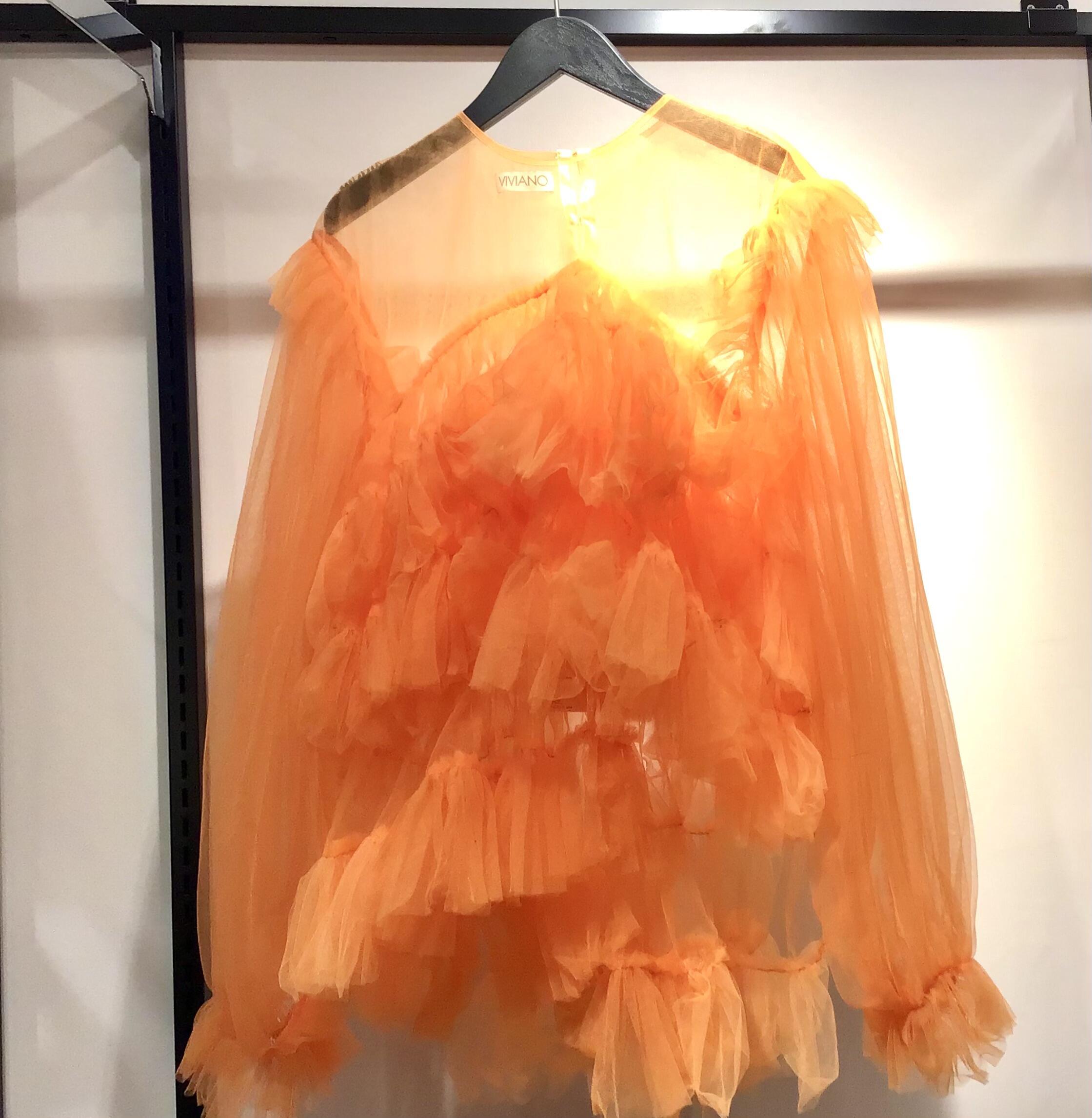 こちらは、【VIVIANO】の代名詞とも言えるチュールを何層にもティアードしたブラウスです。