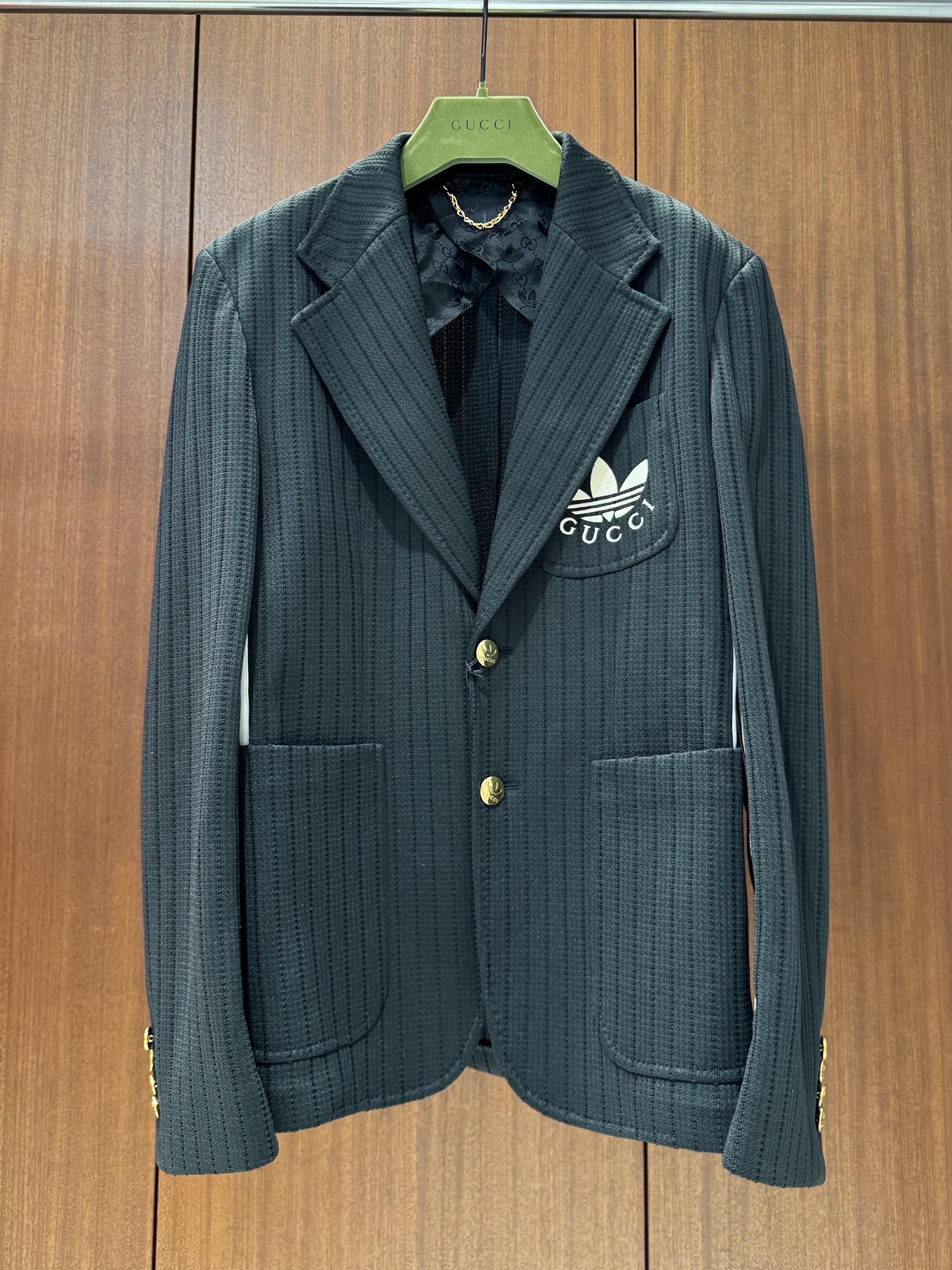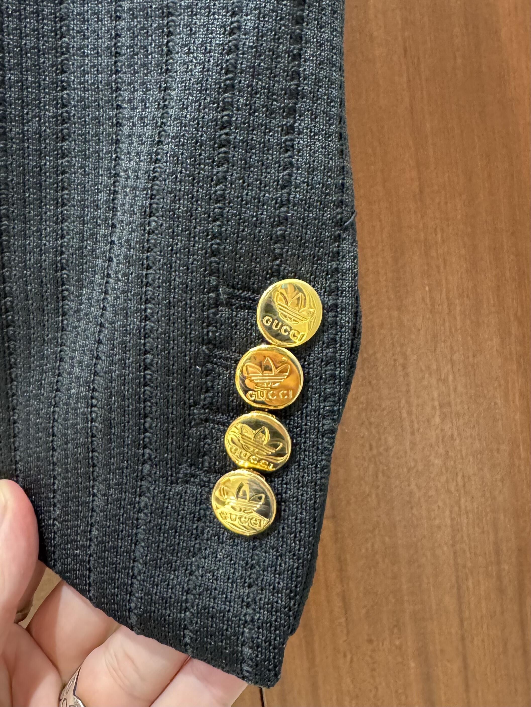 胸元にはadidasのトレフォイルとGUCCIロゴを組み合わ