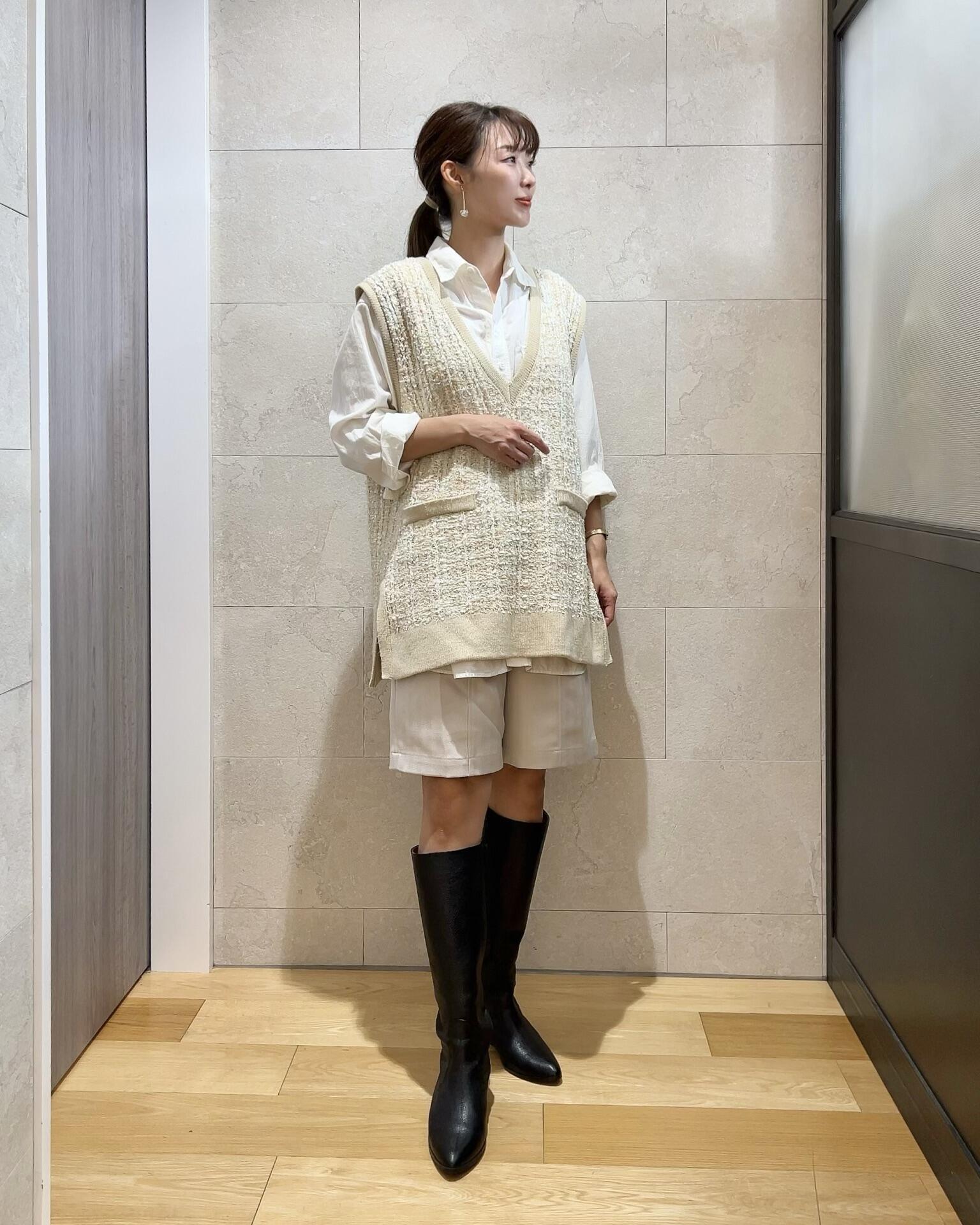私も今日はニットベストのレイヤードスタイルで出勤しておりました。