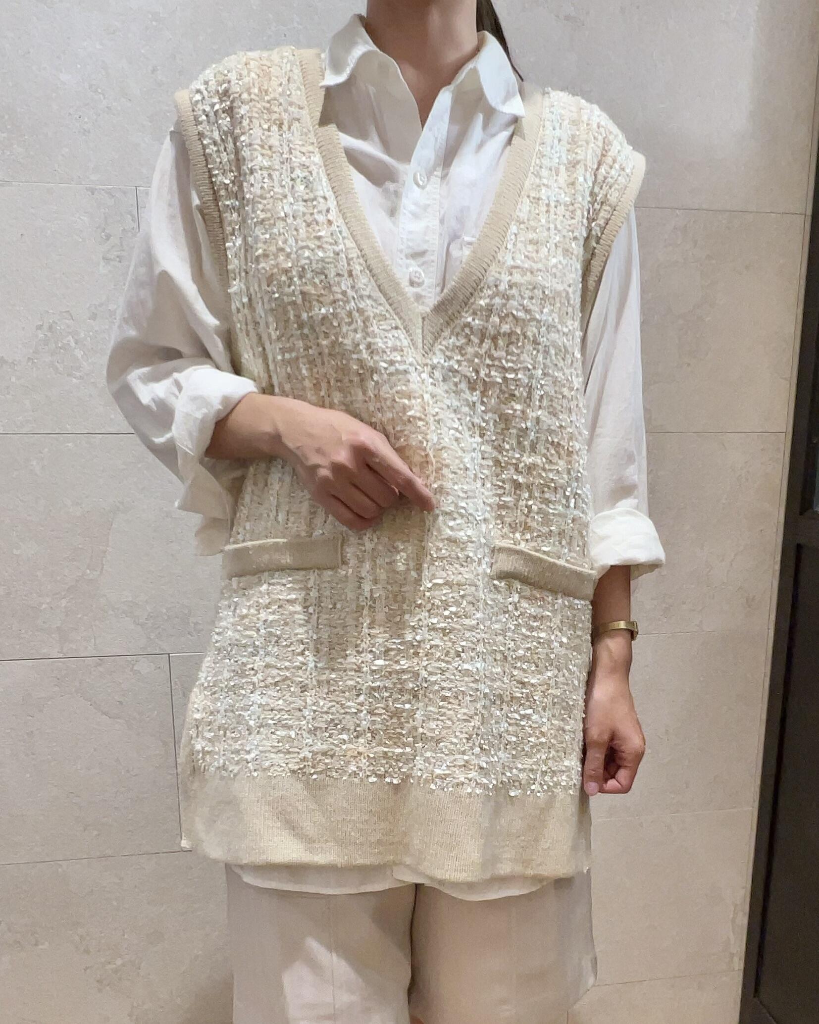先ほどのニットベストよりは落ち着いた雰囲気になりますので、