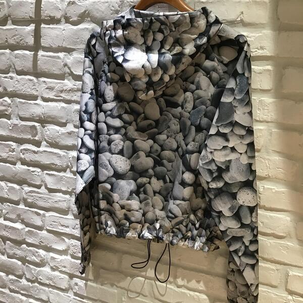 こちらのブルゾンは、一見ドット柄にも見えますが、川辺に落ちてそうな石がデザインされています。