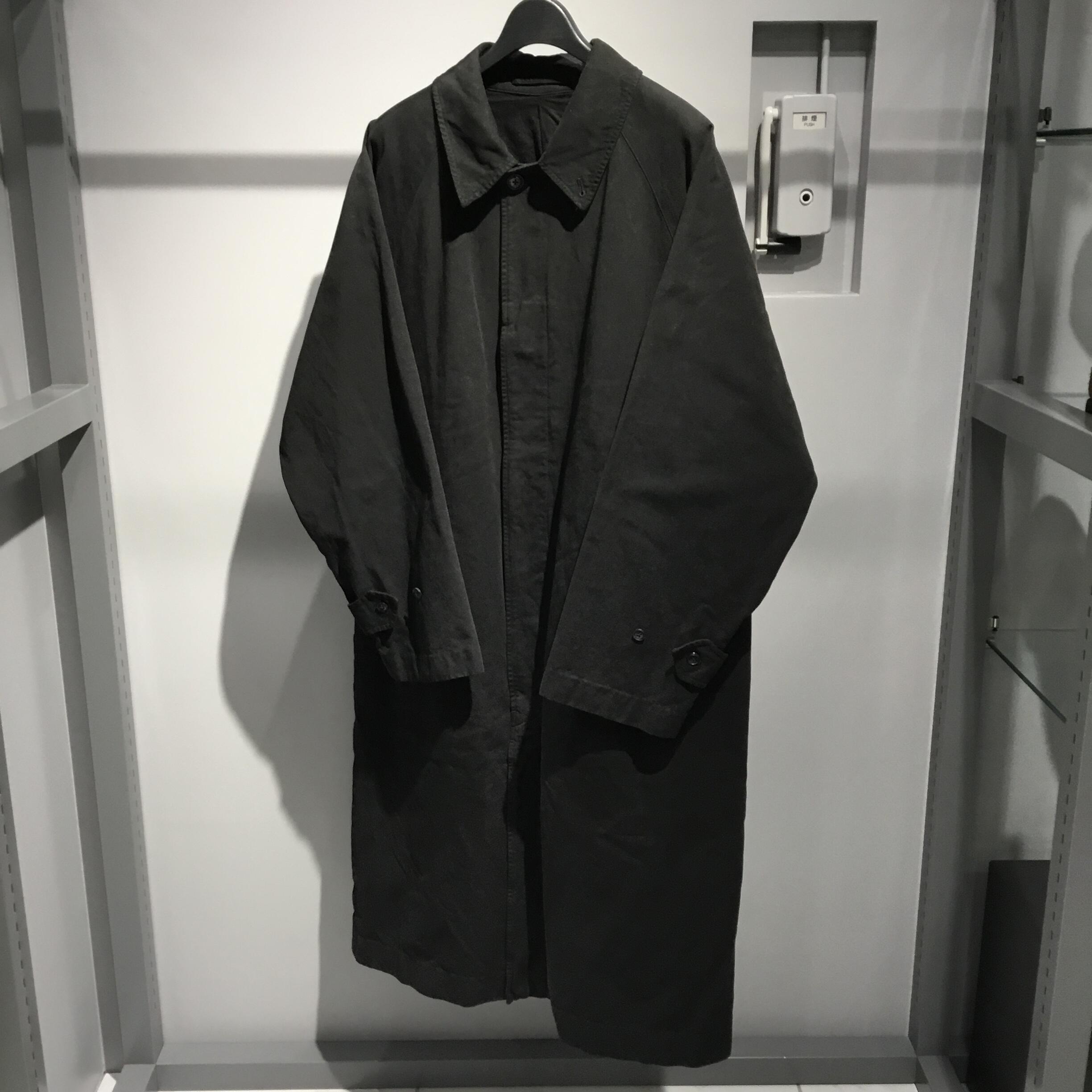 ステンカラーコートというシンプルなコートでありながら、ゆったりとしたサイズ感、ボタンやカラー部分の細かいディテールの繊細さが感じられる。
