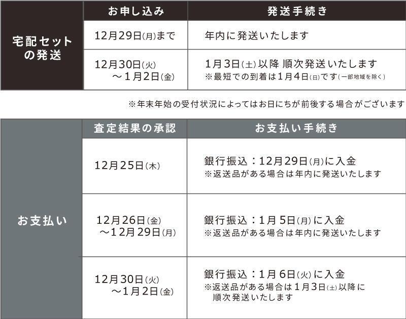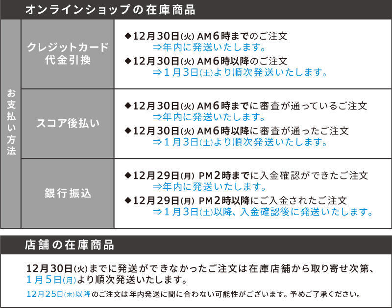 ※年末年始の配達状況や混雑状況によっては、配達日時指定のご希望に添えない場合がございますので、予めご了承ください。
