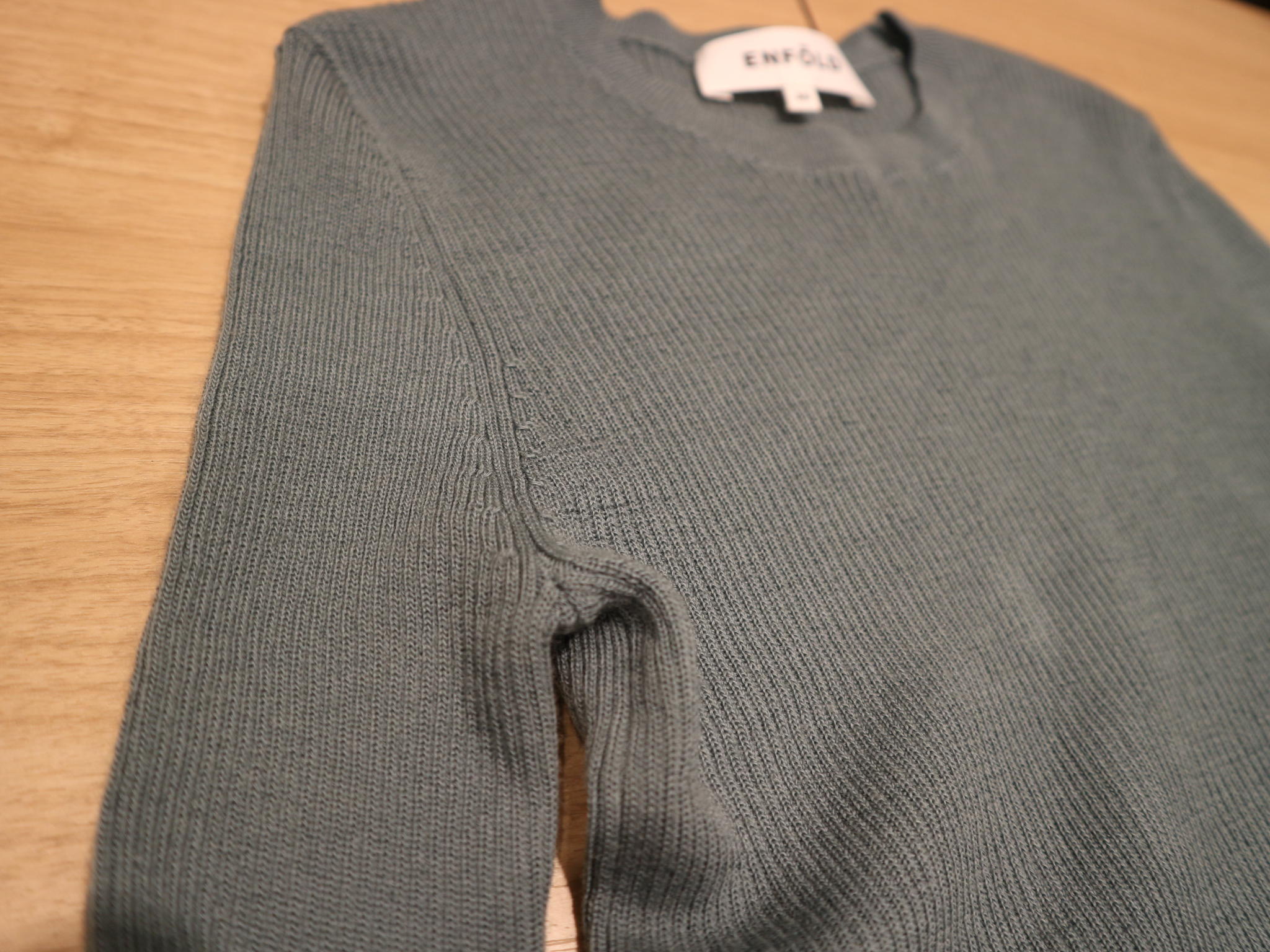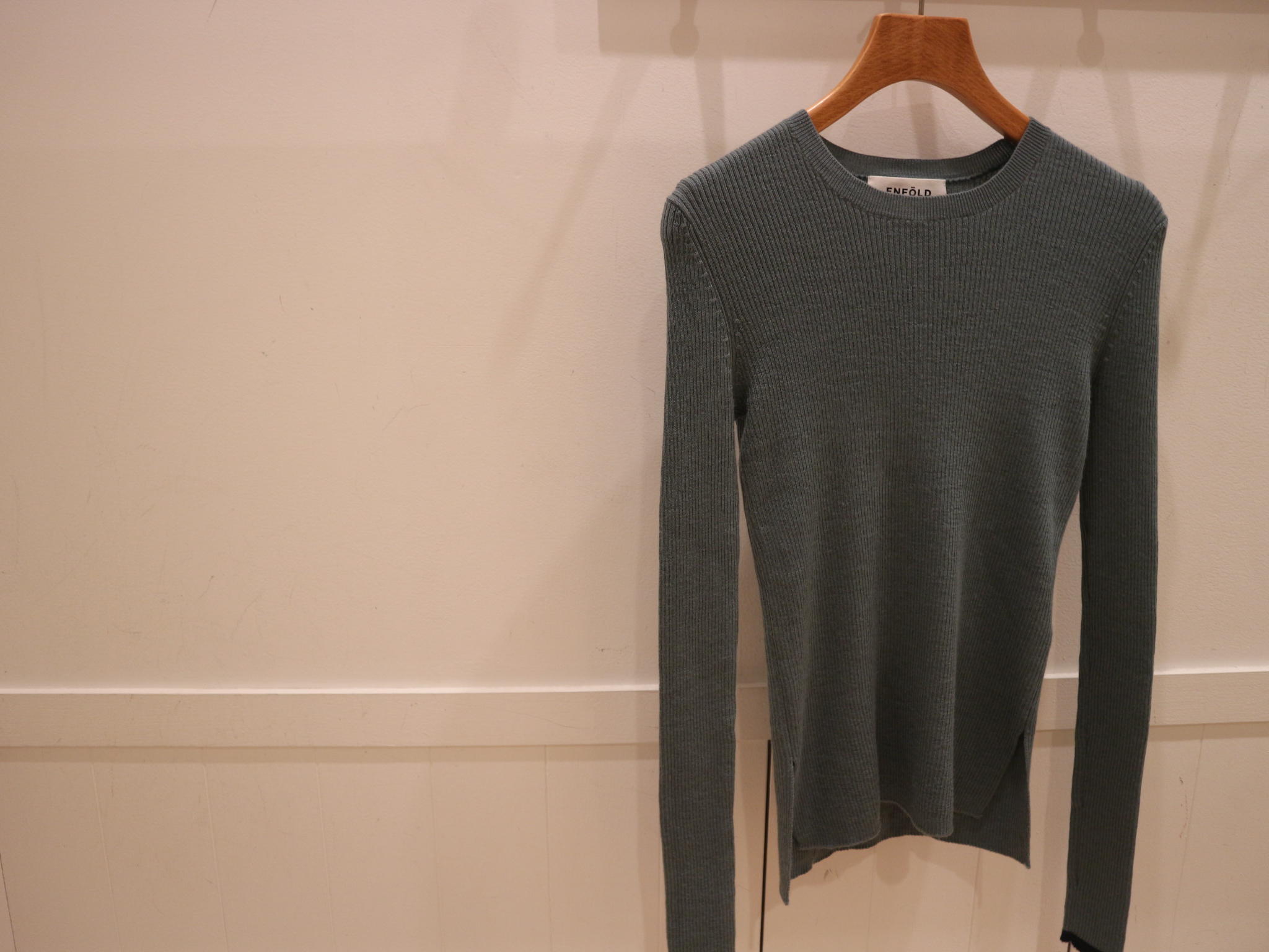 スモーキーなミントカラーが美しいニットが入荷しております。