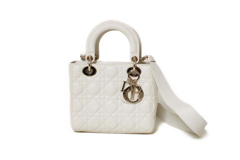 どのサイズでも人気が高く、ブラックやホワイトなどの定番カラーは相場が安定しています。状態が良好なものほど高評価ですが、特に注意したいのは角スレ、ハンドルの型崩れ、金具(D.I.O.R.チャーム)の小傷や変色。また、ラムレザーはシワや押し跡が出やすいため保管状態も重要です。ショルダーストラップ・保存袋・箱など付属品が揃っていると査定額アップが期待できます。